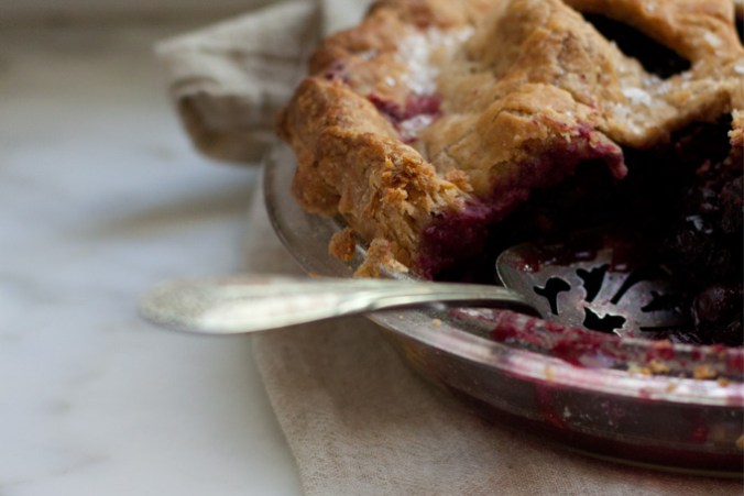 to coat fruit.Fill a pastry lined 9 in pie pan with berry mixture,dot with butter. Adjust top crust.Seal and flute edge. Cover edge of pie with foil. Bake in a 375* oven for 20 minutes. Remove foil;bake for 25 to 30 minutes more or until golden. Cool on wire rack. 8 servings. Indulge warm with ice cream!